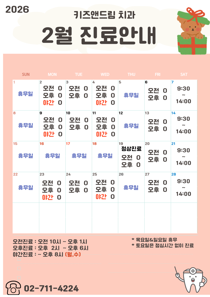 Copyrightⓒ2025 Kiz&Dream Dental Clinic. All Rights Reserved